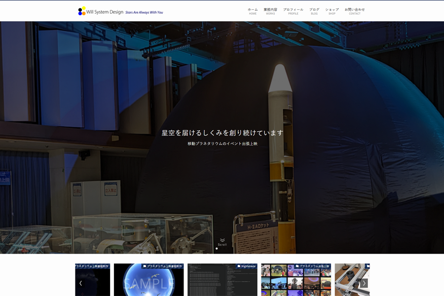 ウィルシステムデザインは、移動プラネタリウムの機材開発や上映番組制作などを通じて、